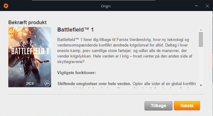 Så kommer der noget nyt frem i vinduet. Her står der det spil du har aktiveret. Tjek af det er det korrekte spil og tryk dernæst på Næste.